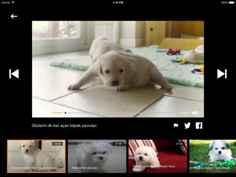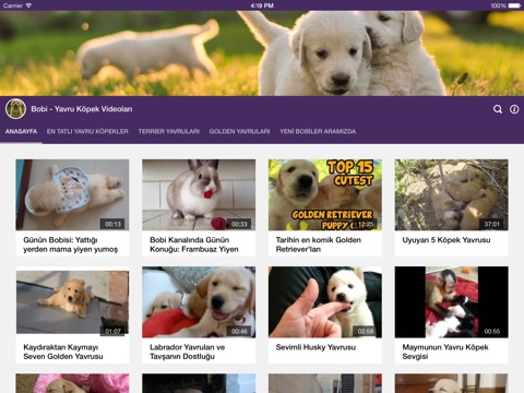 Heyecanlı Golden Retriever yavruları, meraklı Beaglelar, Chow yavruları, Labradorlar ve daha birçok köpek türünün yavrularının videolarını izleyebilir, arkadaşlarınız ile paylaşabilirsiniz.