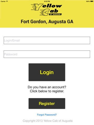 You can register and Login within the app itself. If you already have signed up at http://www.yellowcabofaugusta.com, you can use that account also.