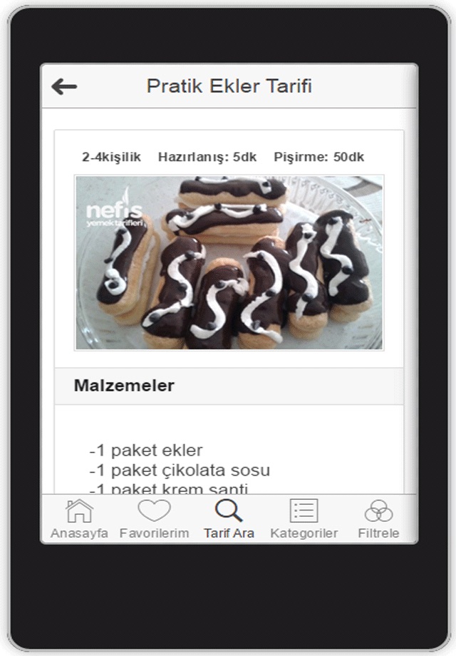 Her çeşit yemek tarifini bulabileceğiniz, farklı servis büyüklüğü ve sürelerine göre filtreleyebileceğiniz, kategorilere göre arama yapabileceğiniz yemek tarifi uygulaması. Düzenli olarak yenilenen 100.000 üzerinde tarif sizlerle.