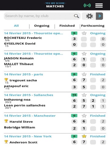 Sport scores of your friends who play tennis in the palm of your hand. Anywhere, anytime, you will find scores of your favorite team in a friendly or official tournament and view the live score with your smartphone.