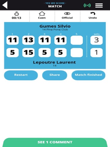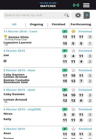 -Follow live, the developments and results of your friends tabletennis matches scores.