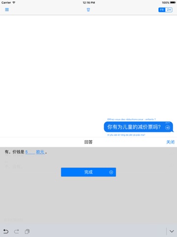 Cette application vous aide à surmonter les barrières de la langue. Un voyage en pays chinois? Yocoy est là! Dans des situations comme à l’hôtel, dans un taxi, au restaurant, ou au bar des traductions CORRECTE sont importantes. Yocoy vous offre des traductions 100% correctes, chaque mot et phrase ayant été vérifiés par des linguistes spécialisés. Chaque dialogue est composé de questions et de réponses dans les deux langues et lapplication marche hors-ligne donc vous navez pas à payer de frais superflus pour avoir une traduction.