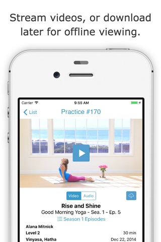 With the Yoga Anytime iOS app, easily stream our videos on your iPhone, iPad, or Apple TV. Your subscription also includes unlimited access to our website YogaAnytime.com. Plus, you can download up to 30 videos for offline viewing.