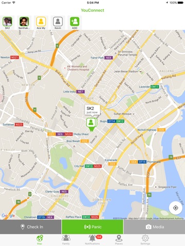YouConnect is a location-based sharing app for Family. You can send a panic signal, check-in and share photos and videos. Live map shows family members current locations.
