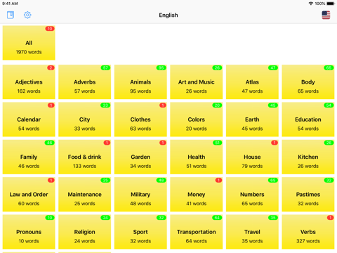 * Easy to use flashcard interface to build your vocabulary. Score yourself as you learn each word and the application calculates when you need to next review the word.
