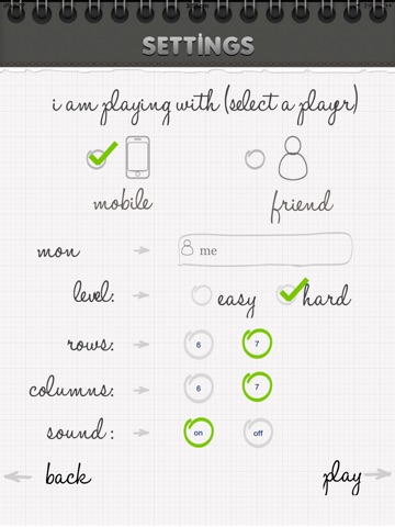 You can select to play the game either against the device or with another player but on the same device. The game works on 2 difficulty levels if you are playing it against the device.