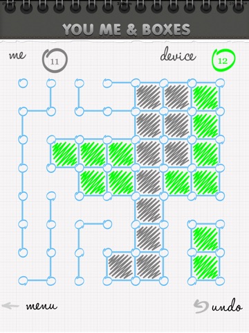 The player who is able to complete maximum number of boxes is the winner. The game starts with an array of dots showing in a matrix. Players would take turn and tap the space between 2 dots to complete each side of a box but a box is named after the player who gets the chance to draw the last line and complete the box.