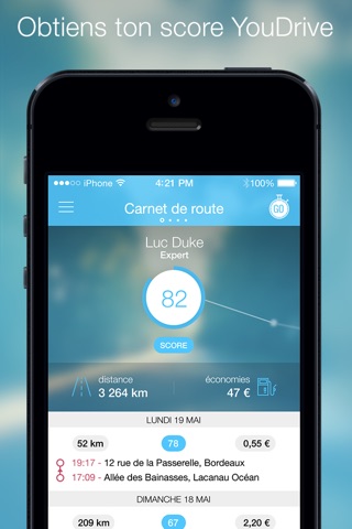 Lidée a la base est SUPER SYMPA. Mais la réalisation.... Tout est minuscule sur lécran les images, les badges et surtout les polices de caractère, trop petites, trop fines et blanches sur fond bleu : un chef dœuvre danti-ergonomie. Quant aux "conseils de ton pote" après une trajet, ça se veut drôle et branché mais cest juste la plupart du temps incompréhensible. Il vaudrait mieux un vrai récapitulatif clair et sérieux surtout pour un sujet aussi sensible que la sécurité routière. Dommage car lidée et la principe sont topissime.