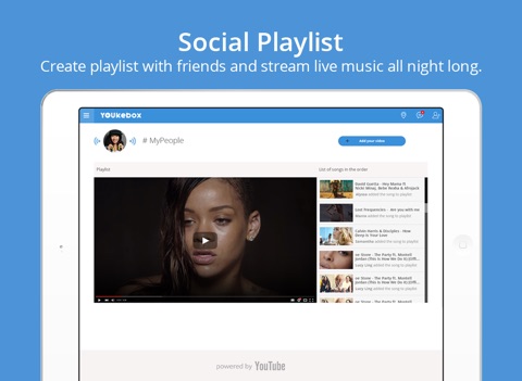 Buď DJ, nastav si vlastní jukebox a nastartuj tvou párty. Vytvoř si vlastní playlist, vyber si jakoukoliv oblíbenou skladbu nebo video z YouTube a přehrávej skladby a videa během celé párty. Nejen ty, ale i všichni lidé na párty mohou být DJ s naší aplikací Youkebox.