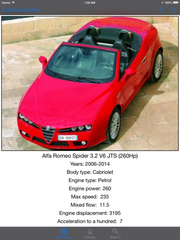 All cars are in one application. You can look for, see and add cars in your virtual garage. Cars have description and photos.