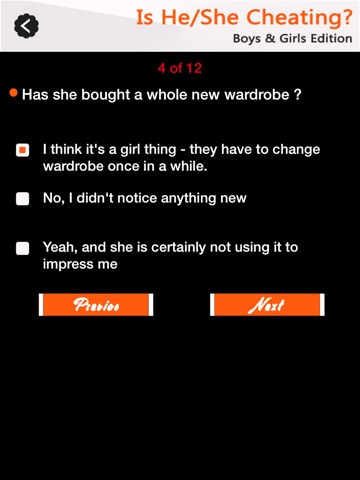 The app features taking a short questionnaire to ascertain if your man is really cheating on you based on the answers. Share your score via email, post it on your Facebook wall or tweet it via Twitter!