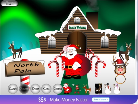 - 6 exciting backgrounds to choose from(New Years and Christmas), design away with your creativity with tons of items and take screenshots and send them directly to FB.
