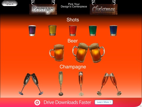 - Features a variety of alcoholic drinks as centerpieces or choose holiday items if you prefer