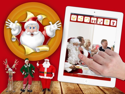 Wish Merry Christmas 2015 with original Merry Christmas cards with the typical Christmas stamp. Santa appears in different positions and attitudes to find the option you want. A funny pictures to hallucinate and make you laugh. Choose images from the gallery or take a photo, then insert in that image a sticker of Santa, and the result: some funny pictures or selfies to break out laughing and sharing by any device you have in your mobile.