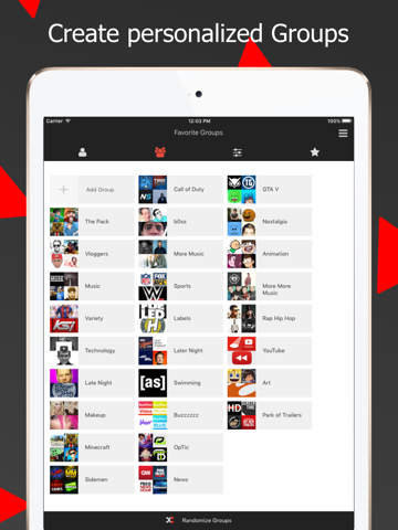 Have a few creators you absolutely love but cant decide which to watch from? With our Groups feature you can combine multiple channels into one group, name it whatever youd like, then shuffle between all of them. Think of it as your own personal TV stations.