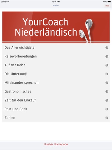 Wählen Sie dann gegebenenfalls das gewünschte Unterkapitel aus . Wenn Sie nun auf eine Wendung tippen, hören Sie automatisch die Audioaufnahme. Einfacher geht es nicht! Viel Spaß mit YourCoach Niederländisch!