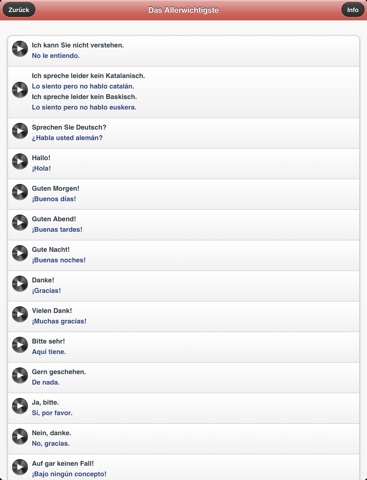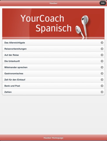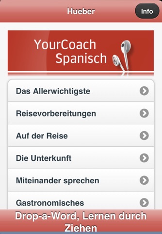 Wählen Sie dann gegebenenfalls das gewünschte Unterkapitel aus . Wenn Sie nun auf eine Wendung tippen, hören Sie automatisch die Audioaufnahme. Einfacher geht es nicht! Viel Spaß mit YourCoach Spanisch!
