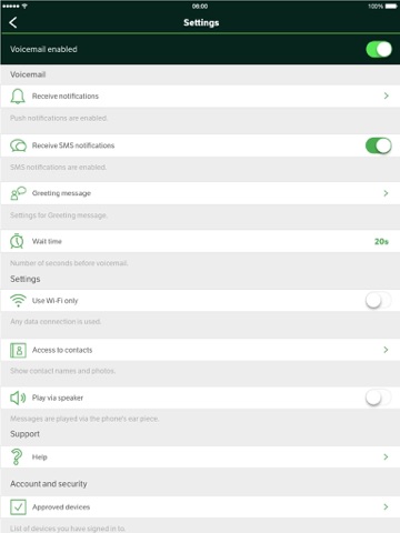 If you want to receive notification of new voicemail messages, you can easily turn on both SMS and push-notifications. Notifications give you a quick overview of the person who has left you a message.