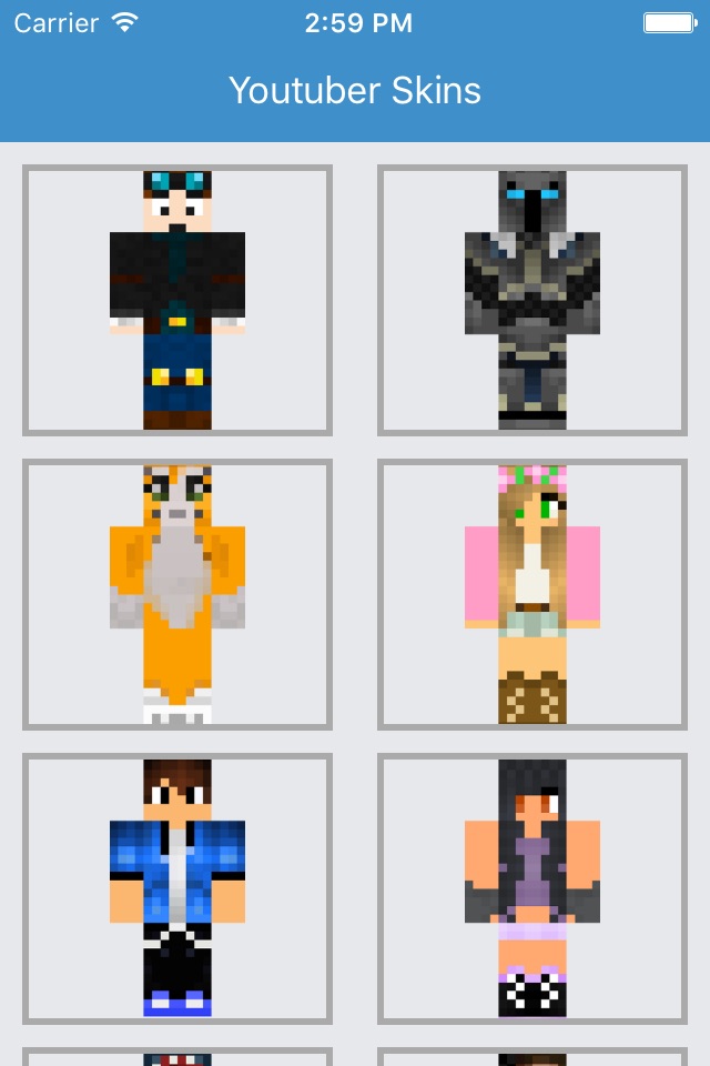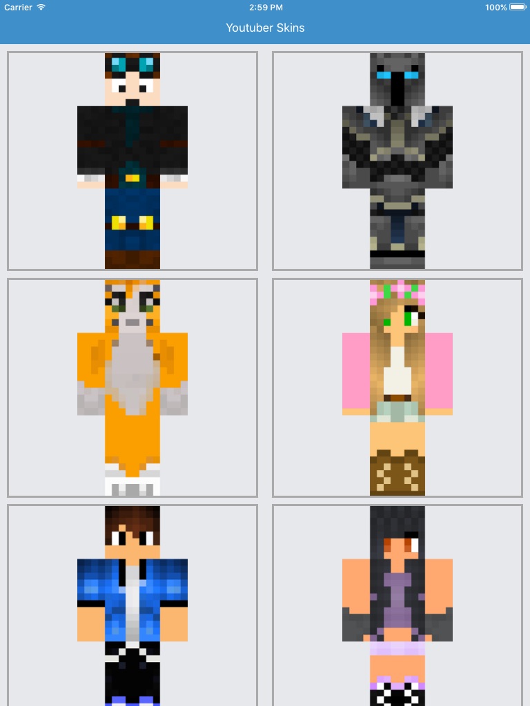 Dozens of youtuber skins are available for Minecraft now! Download this app for free and you can find various youtuber related skins inside.