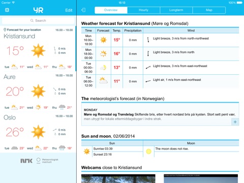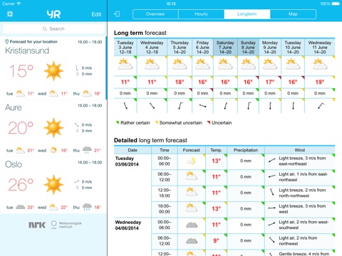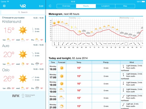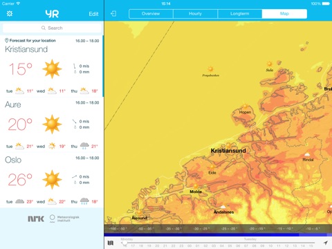 This app is made in Norway, but it has gained a very favourable reputation all over Europe for delivering the most accurate weather forecasts (at least for places in Europe). Try it, compare, and you will see.