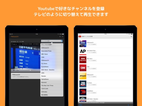 * チャンネルを次々と切り替えて、Youtubeをテレビのように楽しめる