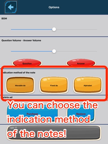・Ypu can choose the method of the name of note that movable do, fixed do, alphabet method(C,D,E...) had!