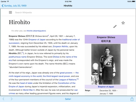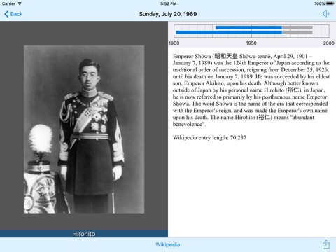 Tap a picture tile and get a short biography, a big picture, timelines, and a link to the corresponding Wikipedia page.