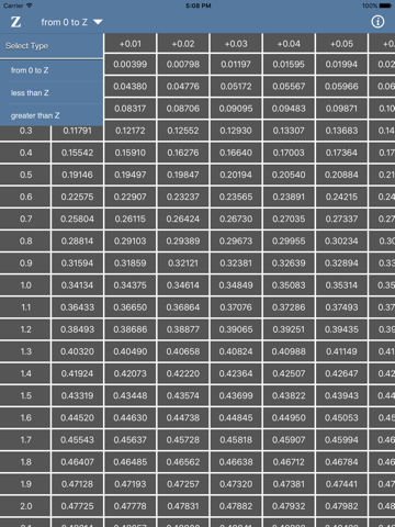 "Z table" application is developed to provide easy and accurate information to users. You can find all Z values on a single app and easy to use table.