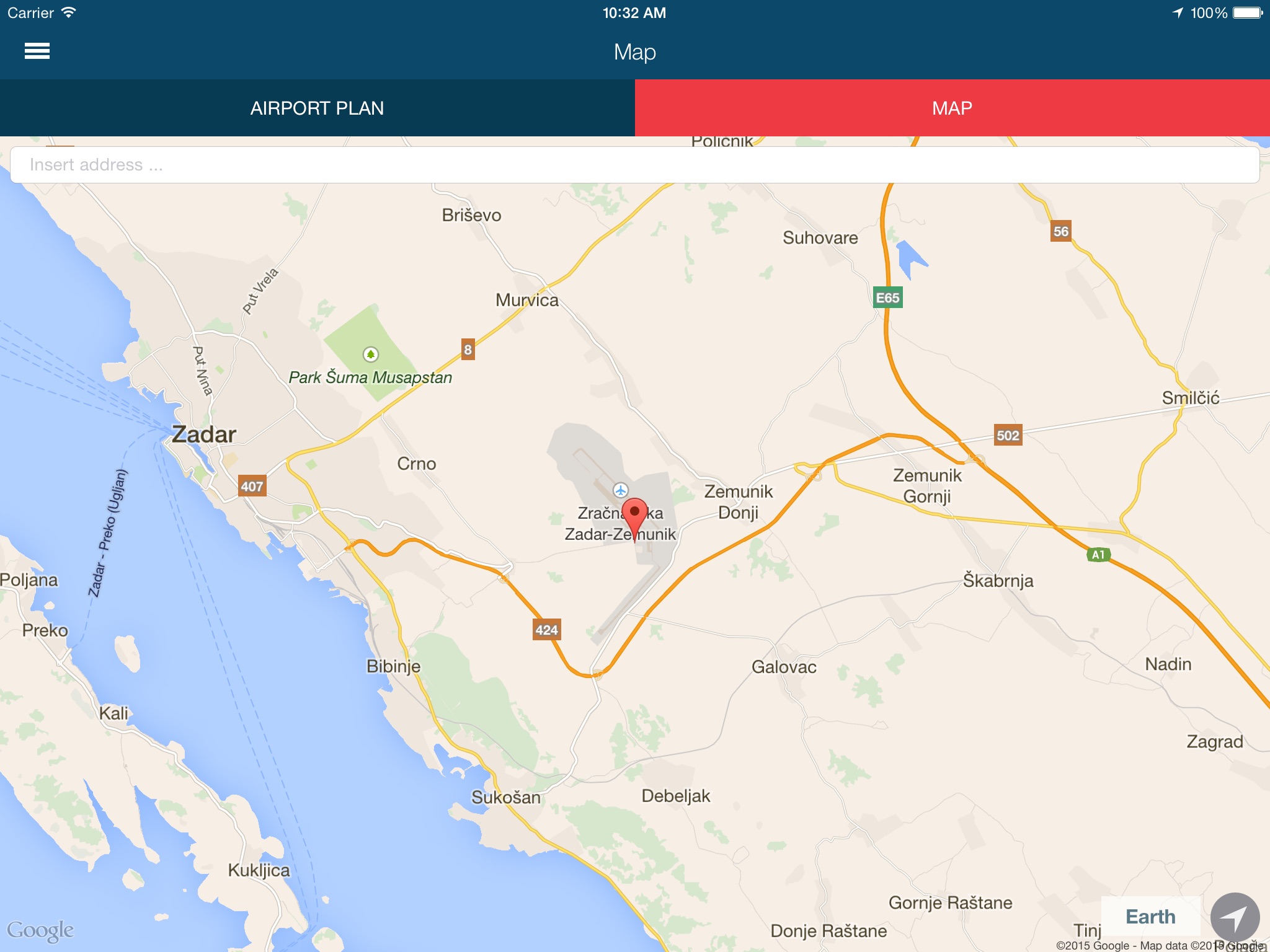 - Map of the Zadar airport and simple map navigation from airport to your destination