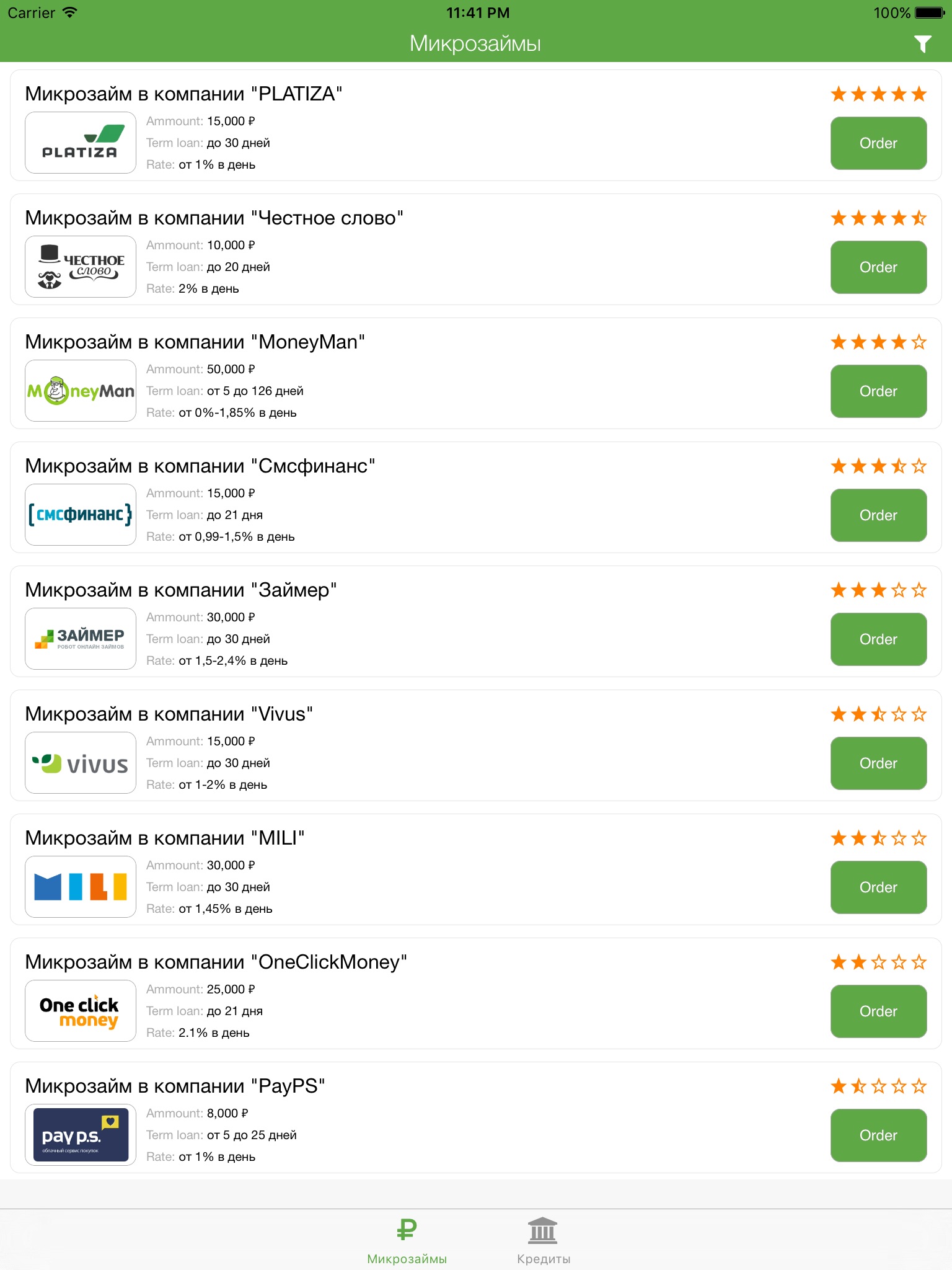 P.S. Мобильное приложение "Займы онлайн" не является МФО и не выдаёт займы.
