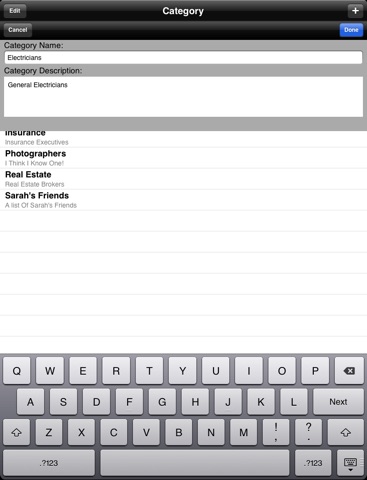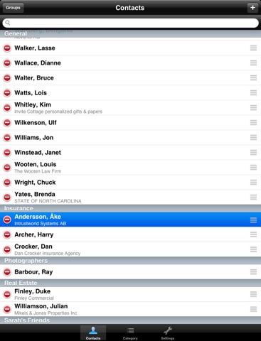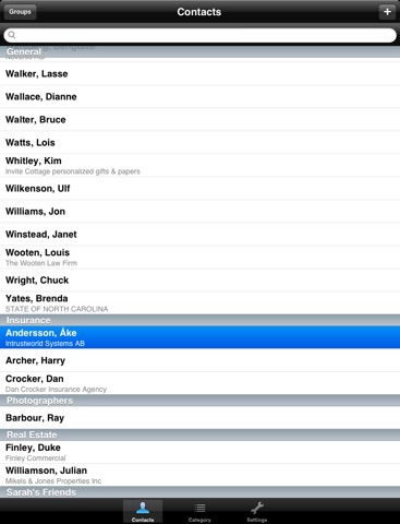 This application sort your standard IOS Address book into Categories.