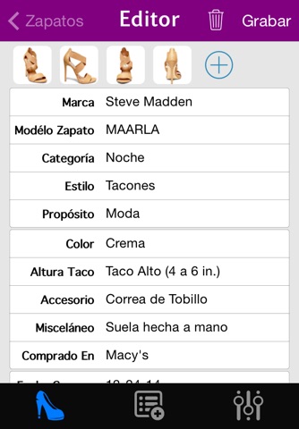 Organiza toda la información de tus zapatos en una forma clara y simple. Toma fotos, y obsérvalas en una hermosa galería de fotos.