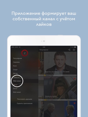 Больше не придётся листать бумажный тв-гид и просматривать бесконечную телепрограмму в интернете. Zapster сделает это за вас. К тому же, этот малыш еще и умён: просто “лайкните” понравившуюся передачу, и она появится на вкладке "Мой канал". Всего через несколько дней использования Zapster начнет подбирать передачи с учетом ваших индивидуальных интересов. Это уникальная возможность иметь свой собственный канал каждому члену семьи! Ну, а если не знаете что посмотреть, то Zapster предложит вам популярные передачи.