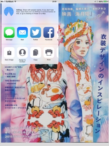 - Swipe Up: Share SNS(Twitter,Facebook), Mail, Save to photo etc.