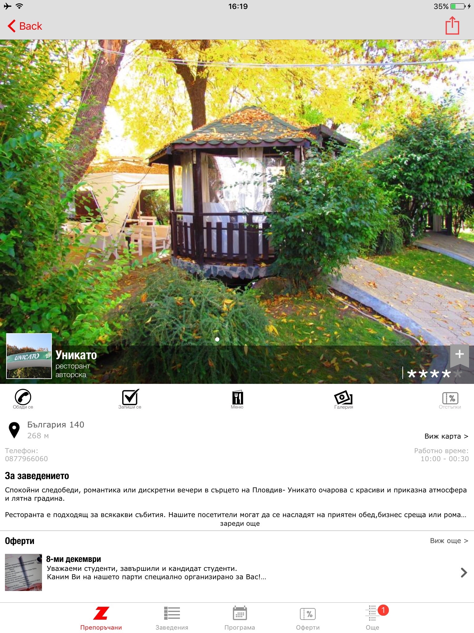 - оферти на конкретни заведения