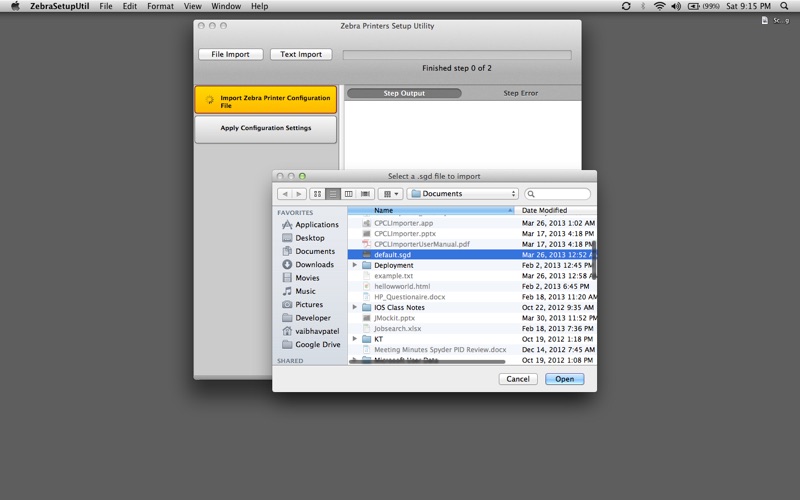 1). Exporting a .sgd configuration file to the printer.