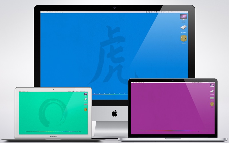 Experience the morning dawn as red moves through orange and yellow. Imagine green fields during the morning and blue sky in the afternoons as these colors appear on your desktop. In the evening the blue desktop gets darker around nightfall and ends the day in a calming night time violet.