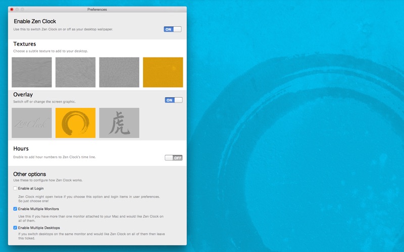 Zen Clock can be used on multiple desktops and monitors connected to the same Mac.