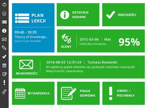 Zenit - elektroniczny dziennik z dostępem do ocen, obecności, planu lekcji, uwag i pochwał, prac domowych wraz z podglądem wydarzeń szkolnych oraz wewnętrznym system komunikacji między użytkownikami.