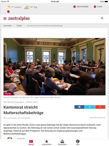 Die App nutzt die volle Grösse des Bildschirms, informiert mit News und Alerts und verfügt über Lesezeichen und Speichermöglichkeiten Ihrer Lieblingsartikel.