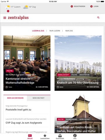 * News, Analysen, Hintergründe, vielfältige Themenblogs, Liveberichte, Konzertkritiken: Auf der App finden Sie die wichtigsten Inhalte von zentralplus.ch
