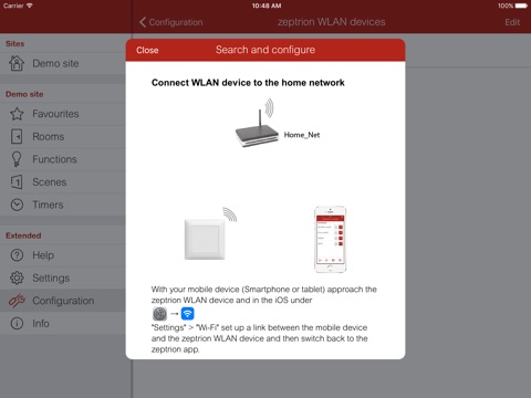 •The zeptrion App works in the same WLAN-based home network as the Feller zeptrion WLAN devices intermediate module 2C and extension unit 4C