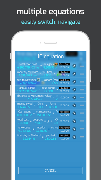 You no longer have to open up a side-memo/note to check what you are calculating. Just type in all the items as if you are taking a note while results are calculated in real-time. Get away from the stress of remembering the values (numbers) and what you wish to calculate.
