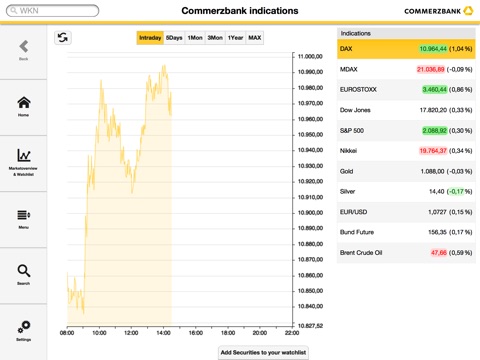 - Realtime Indications for the most important indices, currencies and commodities.
