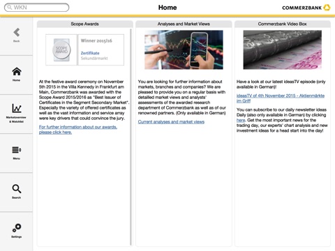 The Société Générale Derivatives App provides you with the most relevant information about certificates and keeps you up to date with realtime indications anywhere.