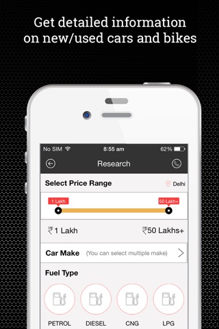 * Get detailed information like specifications, photos, reviews, price quote, Colours among other things.