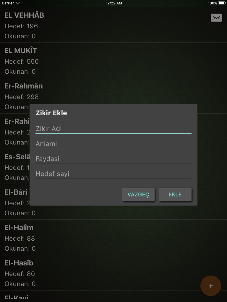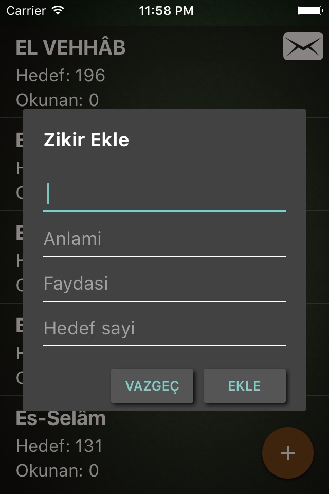 * Zikir Anlamlarını kaydedebilirsiniz