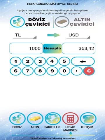 Hesap Makinesi yardımı ile kurlar arasında dönüşümü hesaplayabilirsiniz.