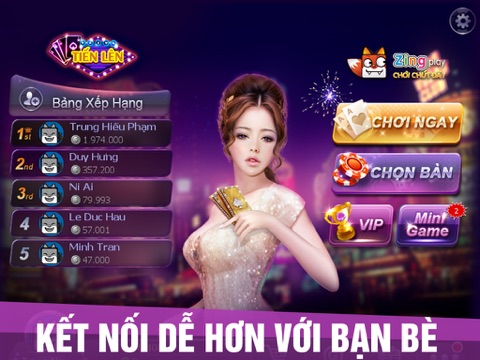 Tiến lên Miền Nam ZingPlay là game bài online ( trực tuyến) miễn phí hay nhất trên di động (mobile), hội tụ nhiều cao thủ các miền.