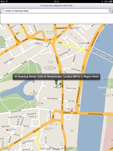 Universal Zip/Postcode finder - Enter Country,City,Address (comma separated) and see on map the place with the zip code if available. Internet connection REQUIRED.